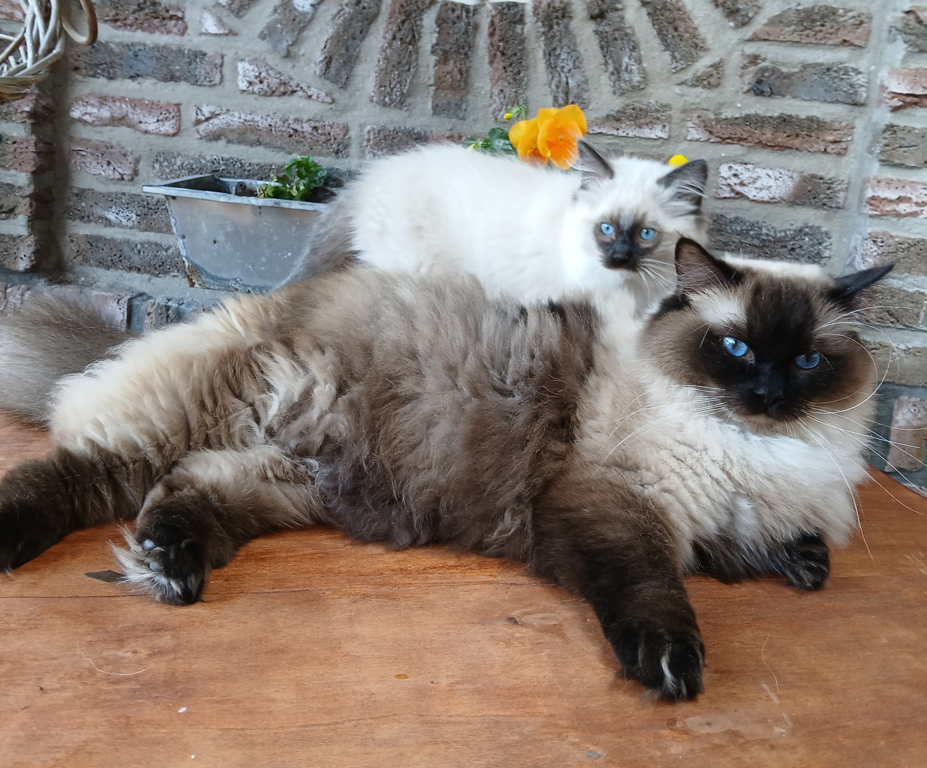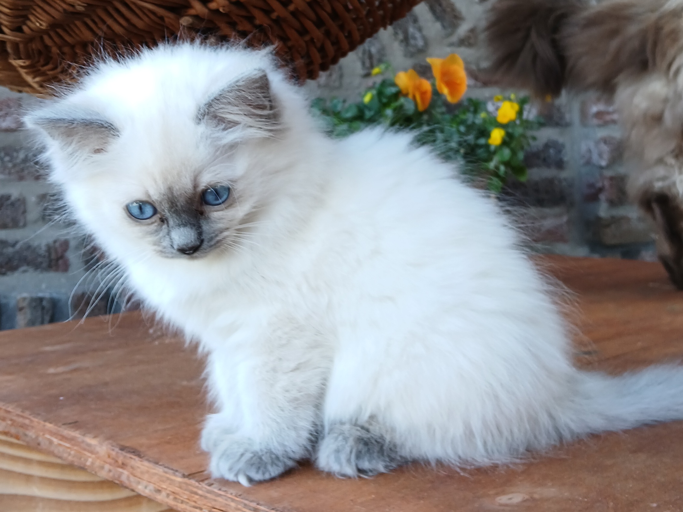 Kefira, geboortedatum 27-6-2021. Haar naam betekent ‘de welp van de Leeuw’. Stoere Ragdoll die de moeder mag zijn van onze cattery! Het is de bedoeling om geschikte kittens van haar te houden om een gezonde en stoere lijn op te zetten. Ze is volledig gezond, niet geschikt als showkat maar qua bouw uitermate geschikt als fokpoes. Zo valt ze niet eens af na een bevalling en kan het opvoeden heel goed aan. Geeft gezonde kittens met een leuk karakter.